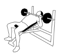 Ligg på benken (20-45 grader) og plasser hendene en håndbredde bredere enn skulderbredde.